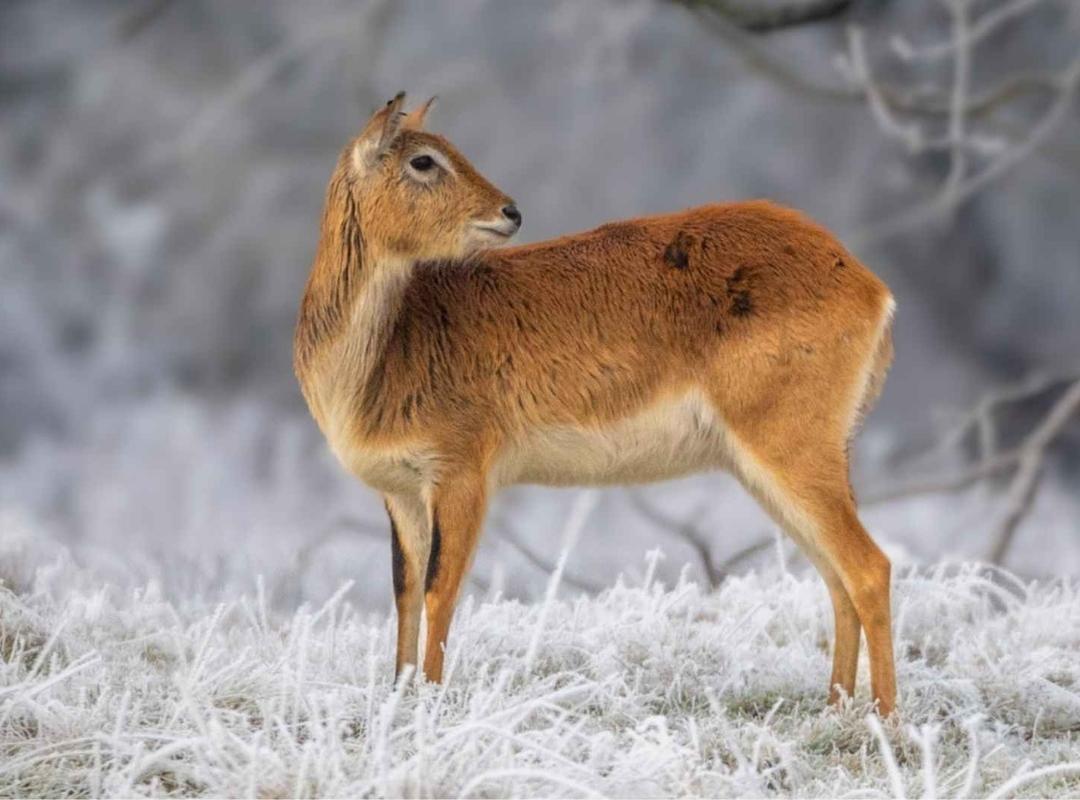On your winter safari you will see several of our deer species in rut, as we have deer species in rut all year round due to the unique species that we have here at Watatunga. Animals also tend to be much more active during the day as temperatures plumet at night, meaning they are often utilising our lovely warm sheds! The bongo seem to be far more active during the day at this time of the year. As the ground is wet, you will routinely see their horns covered in mud, they love digging at this time of the year. The reserve looks beautifully untouched during the winter months, the calm serenity of the reserve in winter is unique. The animals are all very relaxed and tend to show much more reliably as we supplementary feed a lot more during the winter months, therefore they tend to follow the fresh haylage!